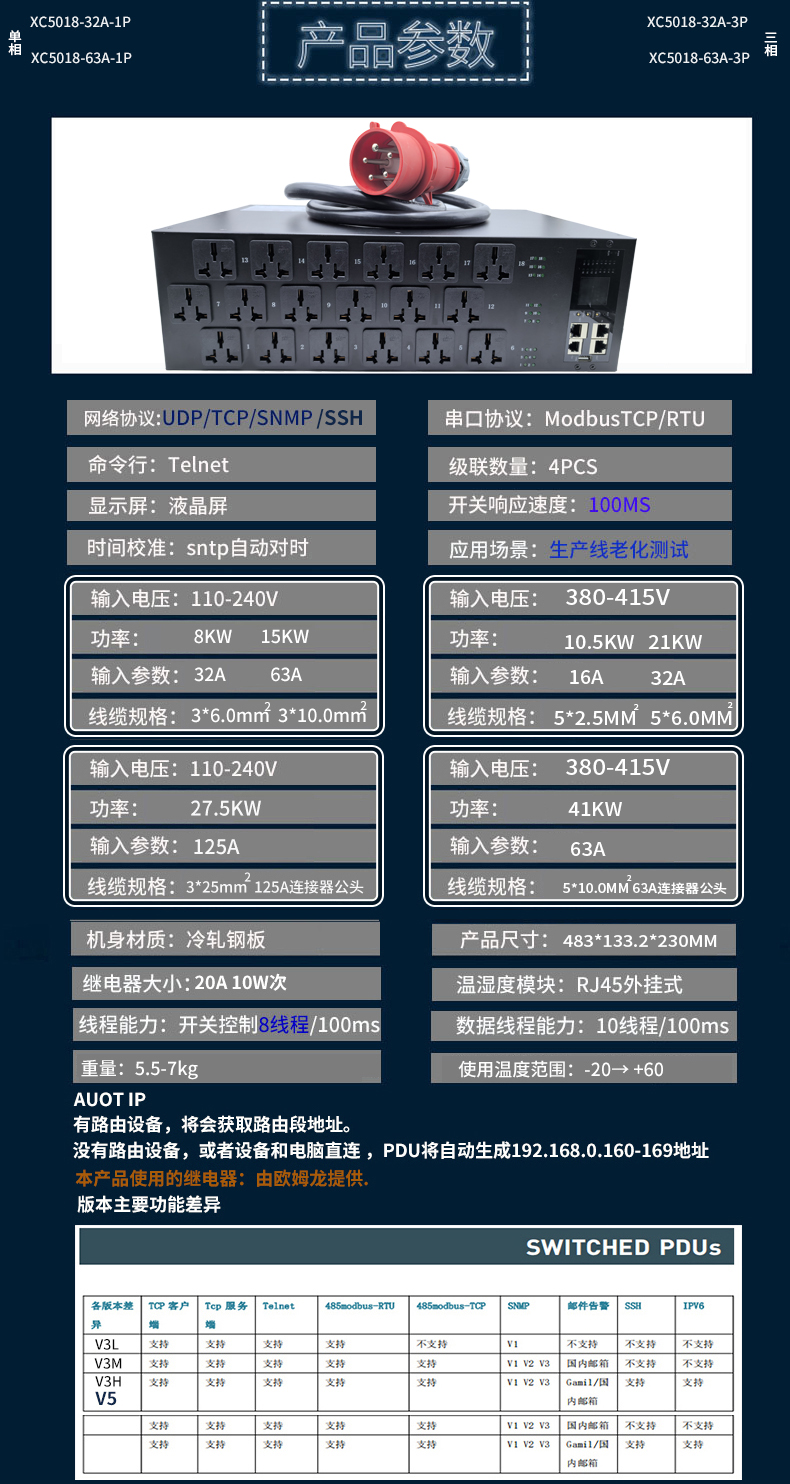 采购:XC5018 18位插口大功率 Ai服务器测试专用智能PDU